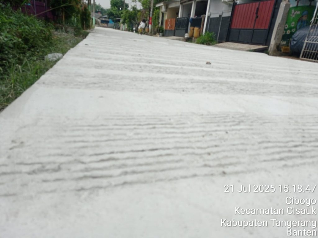 HARIANSINARPAGI.COM | Tangerang – Proyek peningkatan Jalan Lingkungan RT/01/06 (RT. Kuat) Desa Cibogo, Kecamatan Cisauk, Kabupaten Tangerang diduga dilaksanakan kontraktor yang kurang profesional dibidangnya. Senin, 21/07/2025.