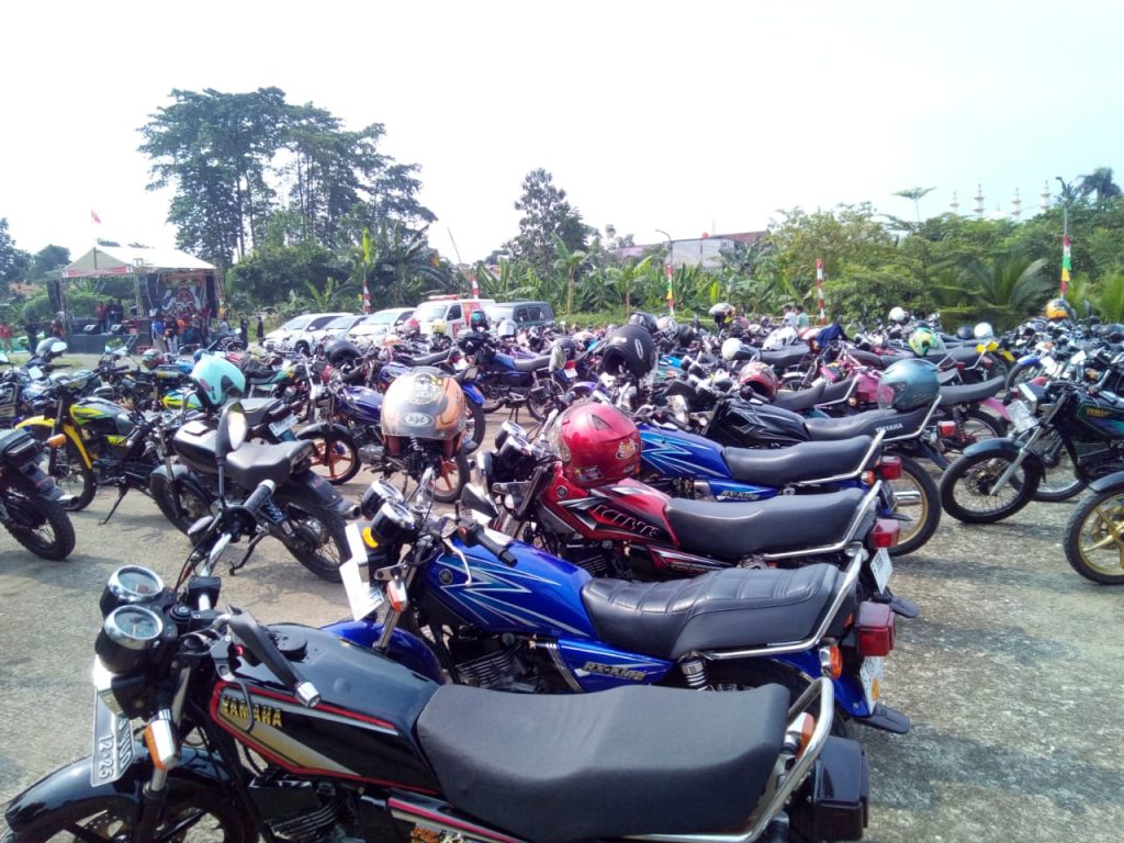 Ratusan kendaraan bermotor dengan mesin 2-tak berpostur gagah ini tampak memenuhi lokasi acara.
