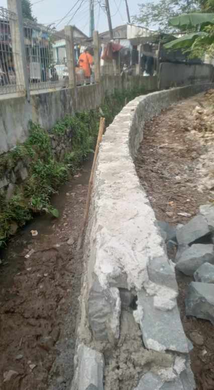 Pantauan di lapangan menunjukkan hasil pekerjaan jauh dari standar konstruksi. Susunan batu tidak rapat, banyak celah terbuka, pondasi tidak jelas, dan adukan semen terkesan asal campur sehingga daya rekatnya lemah. Kondisi ini membuat turap rawan retak bahkan ambruk hanya tinggal menunggu waktu.