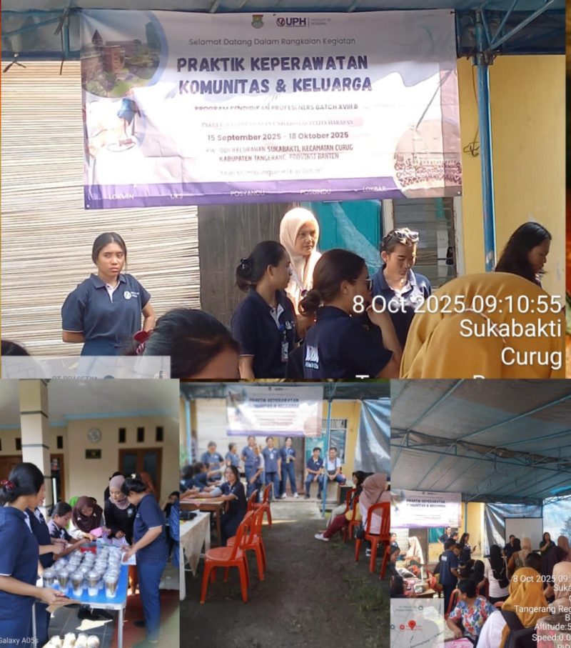 Bertempat di wilayah RT03/RW06 Sukabakti, kegiatan Posyandu kali ini diikuti oleh puluhan ibu dan balita. Para kader Posyandu dibantu oleh mahasiswa KKN UPH, melaksanakan berbagai layanan seperti penimbangan balita, pemeriksaan kesehatan dasar, pemberian vitamin, imunisasi, serta penyuluhan tentang gizi seimbang dan pencegahan stunting. Dengan sub-tema “Kegiatan Praktik Keperawatan Komunitas & Keluarga”. Selain itu, mahasiswa juga memberikan edukasi mengenai pentingnya kebersihan lingkungan dan penerapan Perilaku Hidup Bersih dan Sehat (PHBS) dalam keluarga.