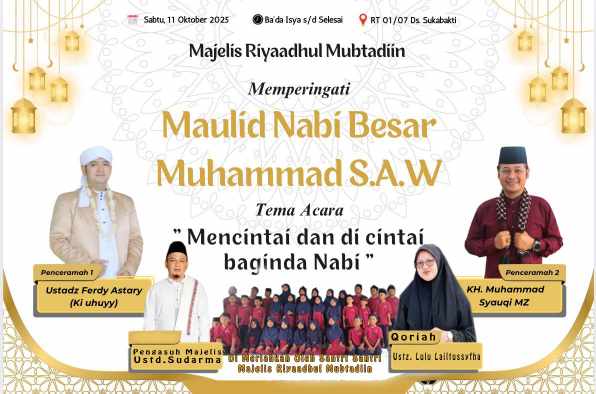 Acara ditutup dengan doa bersama dan ramah tamah jamaah. Suasana penuh kekeluargaan terasa sepanjang kegiatan, mencerminkan semangat kebersamaan dan kecintaan masyarakat Sukabakti kepada Nabi Muhammad SAW.