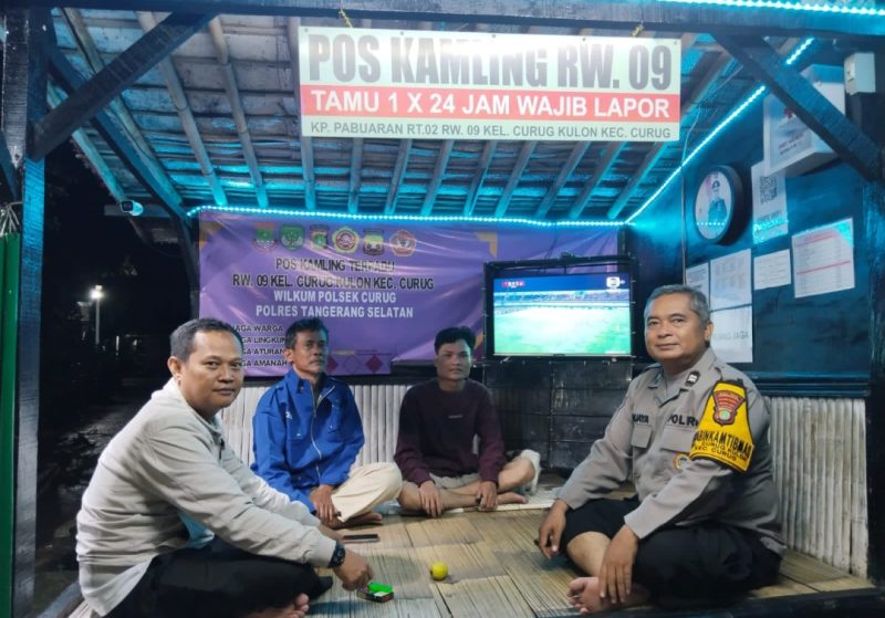 HARIANSINARPAGI.COM | Tangerang – Dalam suasana malam yang tenang di Kp. Pabuaran, Kelurahan Curug Kulon, Kecamatan Curug, Kabupaten Tangerang, semangat menjaga keamanan tetap menyala. Bhabinkamtibmas Kelurahan Curug Kulon Polsek Curug, Aiptu Sanjaya, turun langsung menyambangi Pos Kamling Terpadu RW 09 pada Jumat (24/10/2025) pukul 22.00 WIB.