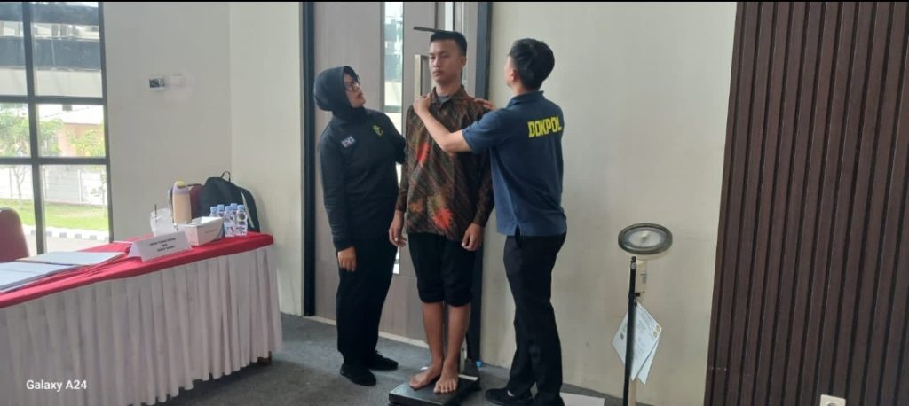 Pemeriksaan verifikasi administrasi dan Pengukuran tinggi serta berat badan dilakukan untuk memastikan bahwa seluruh peserta memenuhi persyaratan penerimaan anggota Polri sesuai SOP yang berlaku