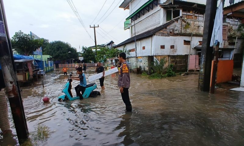 Cek Lokasi Genangan, Bhabinkamtibmas Binong Pastikan Situasi Aman Meski Air Sempat Naik 30 Cm