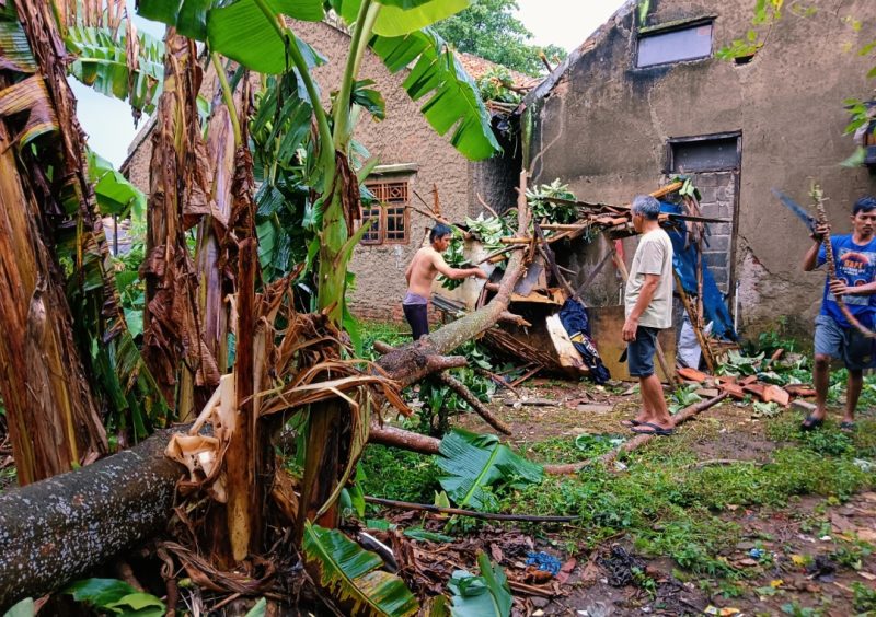Di Kampung Nagrog, sebuah pohon besar bahkan menimpa atap rumah seorang warga. Meski terdengar mengerikan, beruntung peristiwa tersebut tidak menimbulkan kerusakan berat maupun korban jiwa. Warga bersama perangkat Desa sigap melakukan pembersihan dan pemotongan batang pohon yang menutup halaman serta akses jalan.