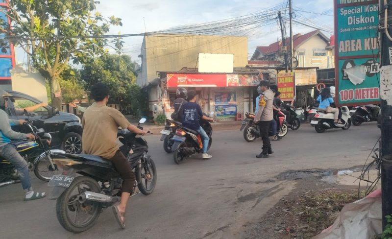 Polsek Curug Hadir di Jam Sibuk, Bhabinkamtibmas Atur Lalu Lintas di Pertigaan Curug Pinang