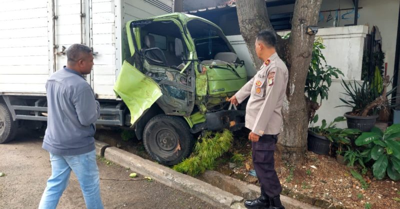 “Truk menabrak pohon kelapa dan pagar perumahan, kemudian kembali melaju hingga menabrak mobil Toyota Agya yang sedang terparkir,” jelas petugas di lokasi.