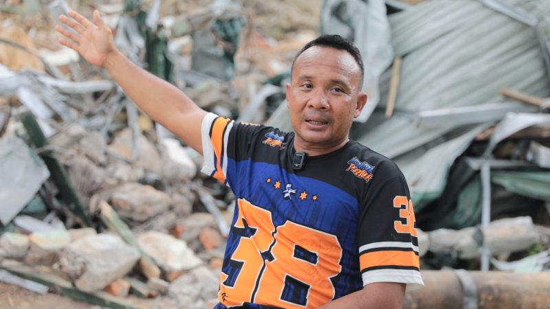 “Posisi istri pada saat itu kelihatan, tapi dia kejepit. Nggak bisa ditolong. Saya hanya bisa membacakan doa di telinganya,” kata Hamzah, yang tak bisa berbuat apa-apa karena tak ada alat berat untuk bisa mengangkat beton yang mengimpit istrinya.