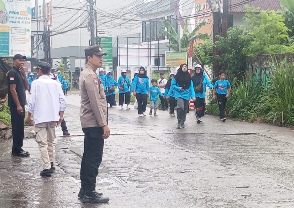 HARIANSINARPAGI.COM | Tangerang – Dalam rangka memberikan rasa aman dan memastikan kelancaran kegiatan masyarakat, jajaran Polsek Curug Polres Tangerang Selatan melaksanakan pengamanan dan pengawalan kegiatan gerak jalan Yayasan Alayinah di wilayah Kelurahan Binong, Kecamatan Curug, Kabupaten Tangerang, pada Sabtu pagi, (10/01/2026).