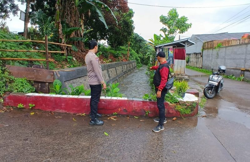 Polsek Curug Siaga Banjir, Bhabinkamtibmas Pantau Kondisi Sungai di Binong