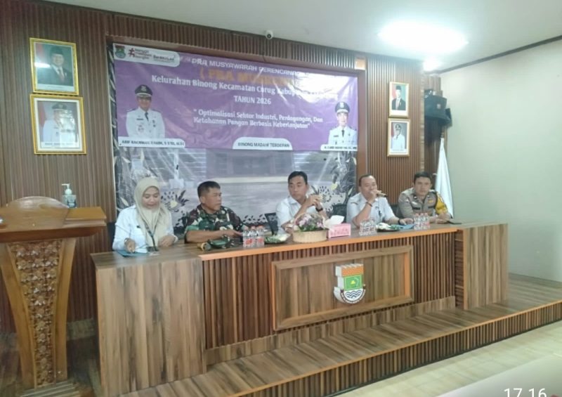 HARIANSINARPAGI.COM | Tangerang – Pemerintah Kelurahan Binong bersama unsur TNI-Polri dan tokoh masyarakat menggelar Pra Musyawarah Perencanaan Pembangunan (Pra-Musrenbang) dalam rangka penyusunan Rencana Kerja Tahun 2027, Rabu (14/01/2026), di Aula Kelurahan Binong, Kecamatan Curug, Kabupaten Tangerang.