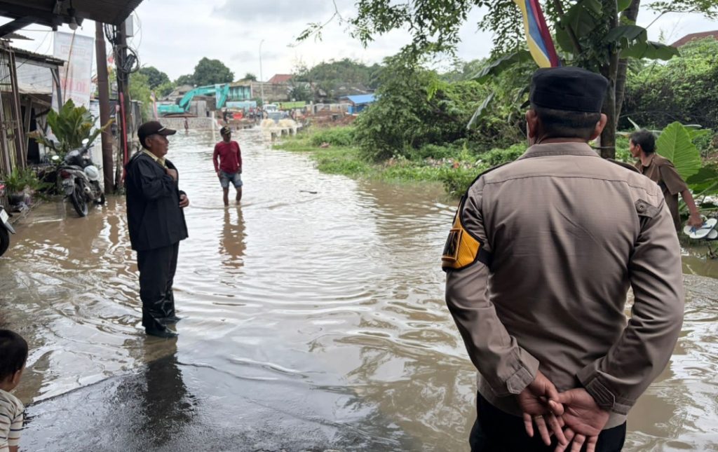 Kali Sasak Meluap, Jalan Raya Pasirandu Terendam – Pawas Polsek Curug Turun Langsung Pantau Lokasi