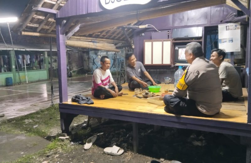 Dalam suasana ronda malam yang penuh kebersamaan, AIPTU Sanjaya berdialog langsung dengan Bapak Andri dan warga yang tengah melaksanakan kegiatan Siskamling.