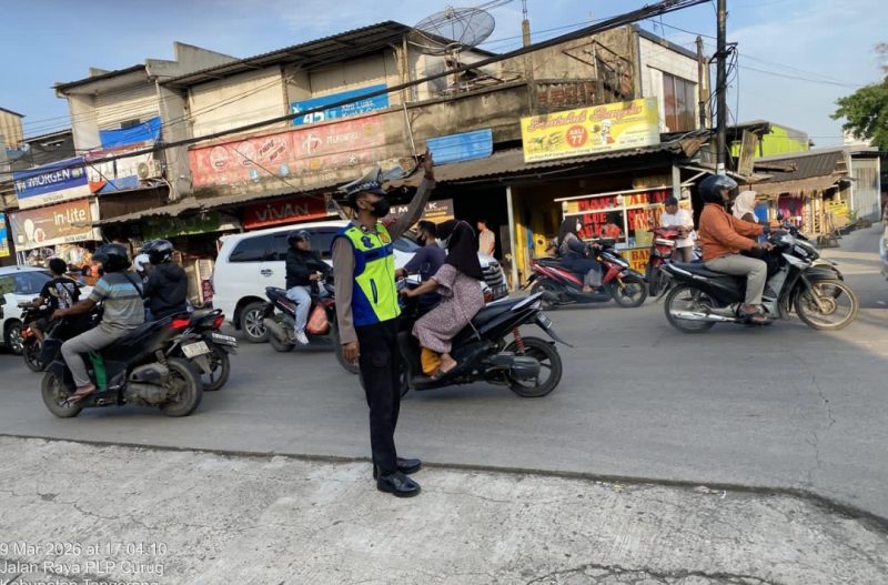 Kegiatan tersebut dilaksanakan oleh Briptu Budi Apri pada Senin (9/3/2026) sekitar pukul 16.30 WIB di Jalan Raya Perempatan Gloria, Kelurahan Curug Kulon, Kecamatan Curug, Kabupaten Tangerang.