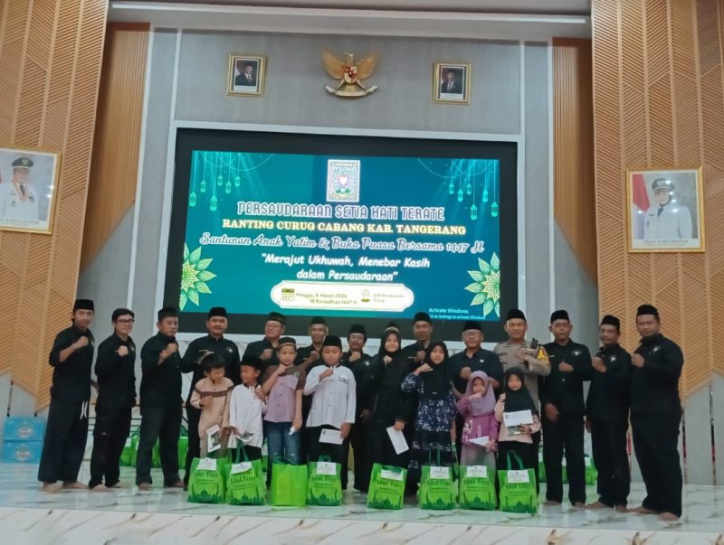 HARIANSINARPAGI.COM | Tangerang – Persaudaraan Setia Hati Terate (PSHT) Ranting Curug, Kabupaten Tangerang, menggelar kegiatan santunan anak yatim sekaligus buka puasa bersama pada Minggu (8/3/2026) di Gedung Serba Guna (GSG) Kecamatan Curug, RT 05/03 Desa Cukanggalih, Kecamatan Curug, Kabupaten Tangerang.