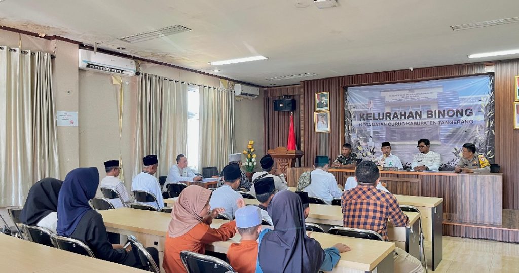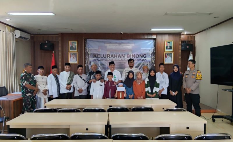 HARIANSINARPAGI.COM | Tangerang – Kepedulian terhadap sesama di bulan suci Ramadhan kembali ditunjukkan oleh jajaran Polsek Curug. Bhabinkamtibmas Kelurahan Binong, Aipda Agus Gumilar, bersama unsur 3 Pilar serta tokoh masyarakat dan tokoh agama melaksanakan kegiatan santunan anak yatim di Aula Kelurahan Binong, Kecamatan Curug, Kabupaten Tangerang, Jumat (13/3/2026).