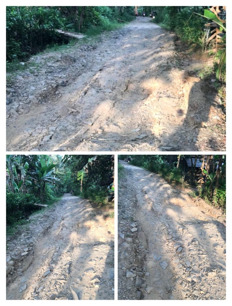 Jalan yang menjadi akses utama masyarakat tersebut kini dipenuhi lubang, becek saat hujan, dan berdebu saat musim kemarau. Situasi ini dinilai mengganggu aktivitas sehari-hari warga yang melintas.